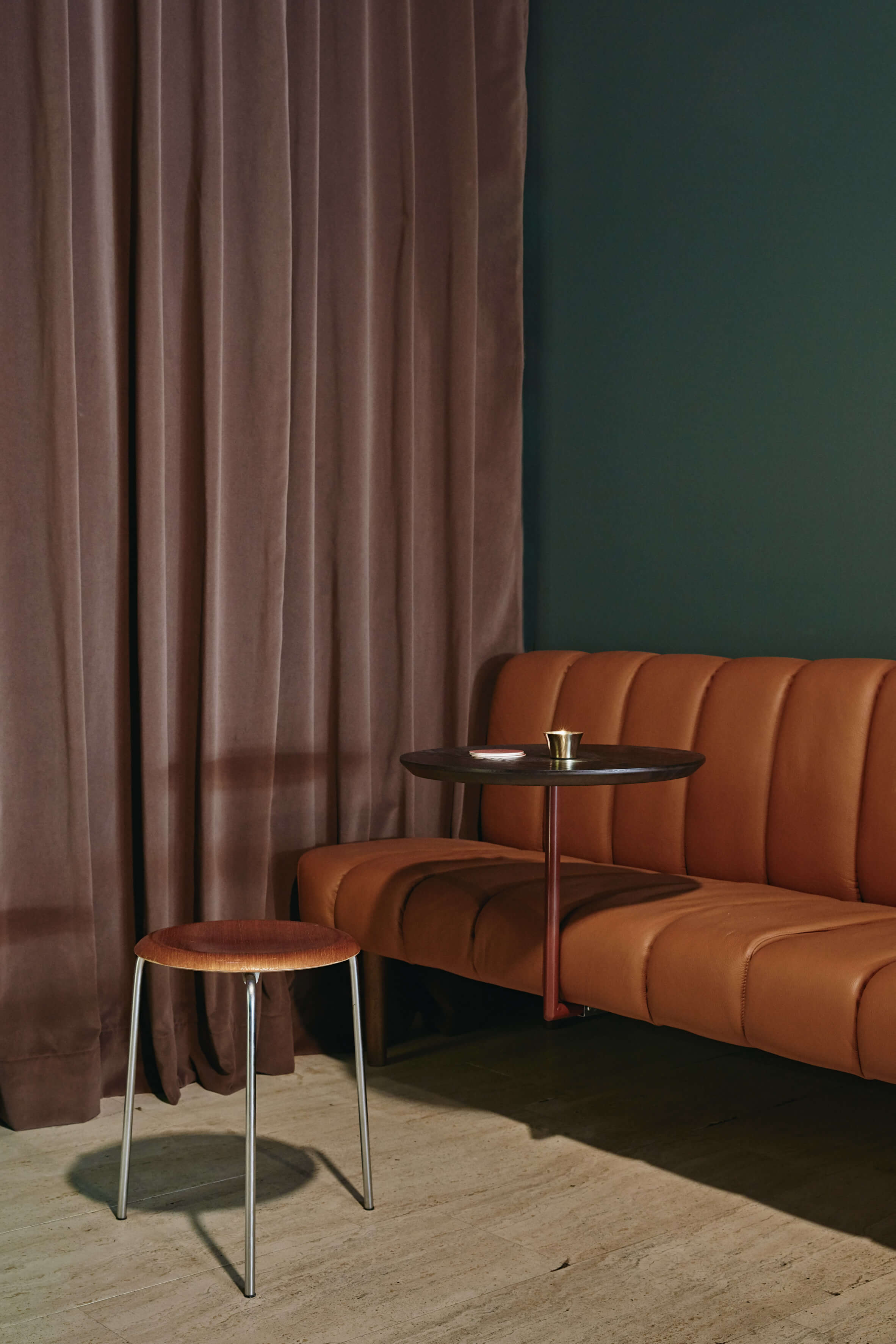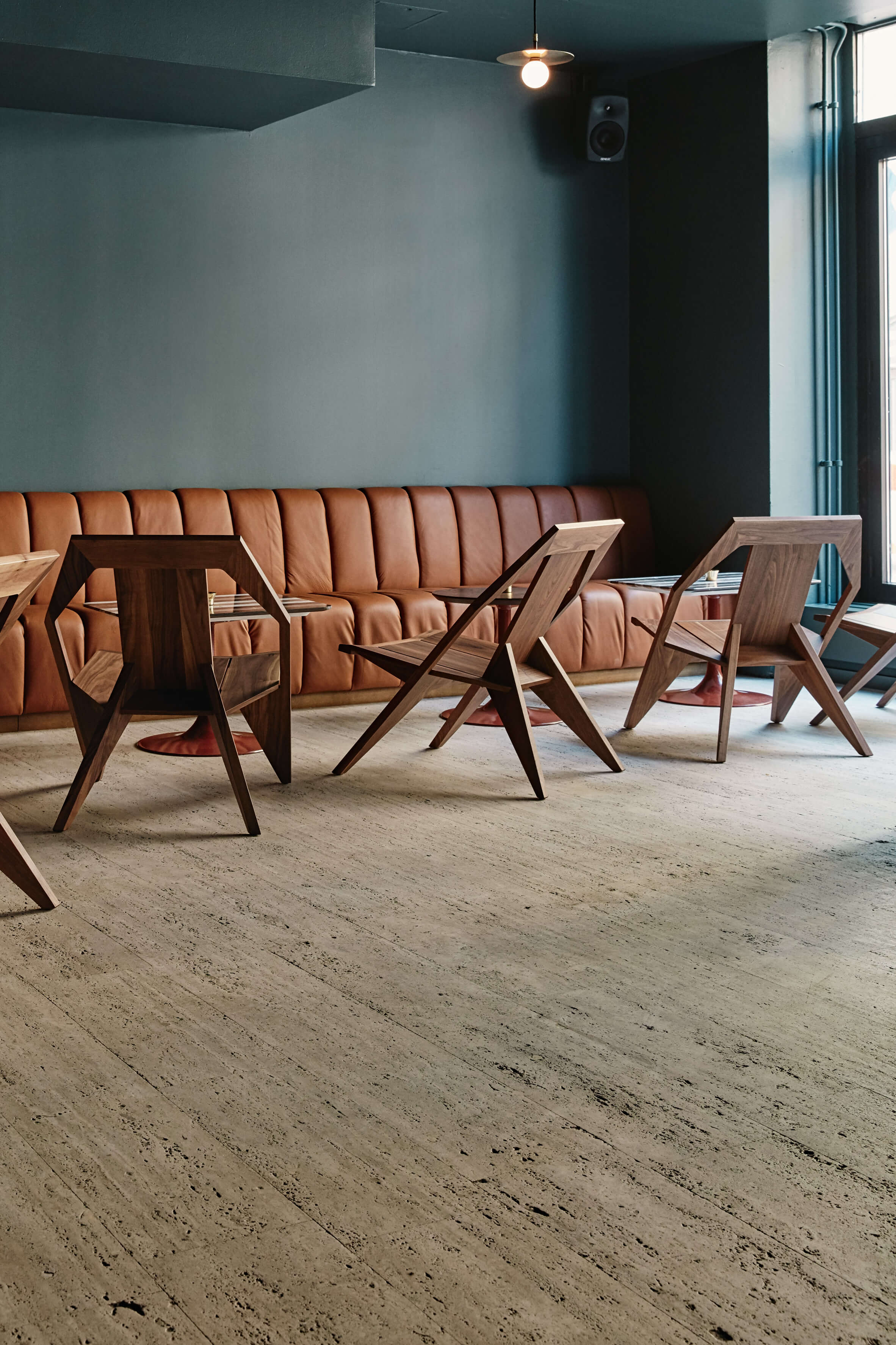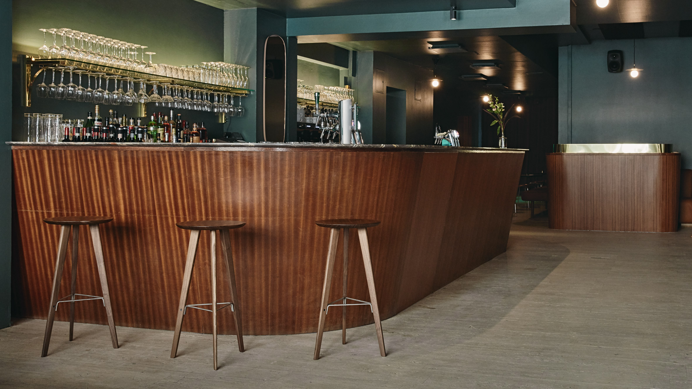 她说:“深绿色的墙壁和天花板用长棕色皮革沙发把你带走,也许到70年代的米兰酒吧。”意大利盖伊奥兰蒂在1965设计的Piopelro台灯强化了这种幻觉。 “现场直播DJ在酒吧的氛围中发挥了很大的作用,并特别关注DJ展位,”Laajisto继续说道。“它是用索菲莱木做的。”